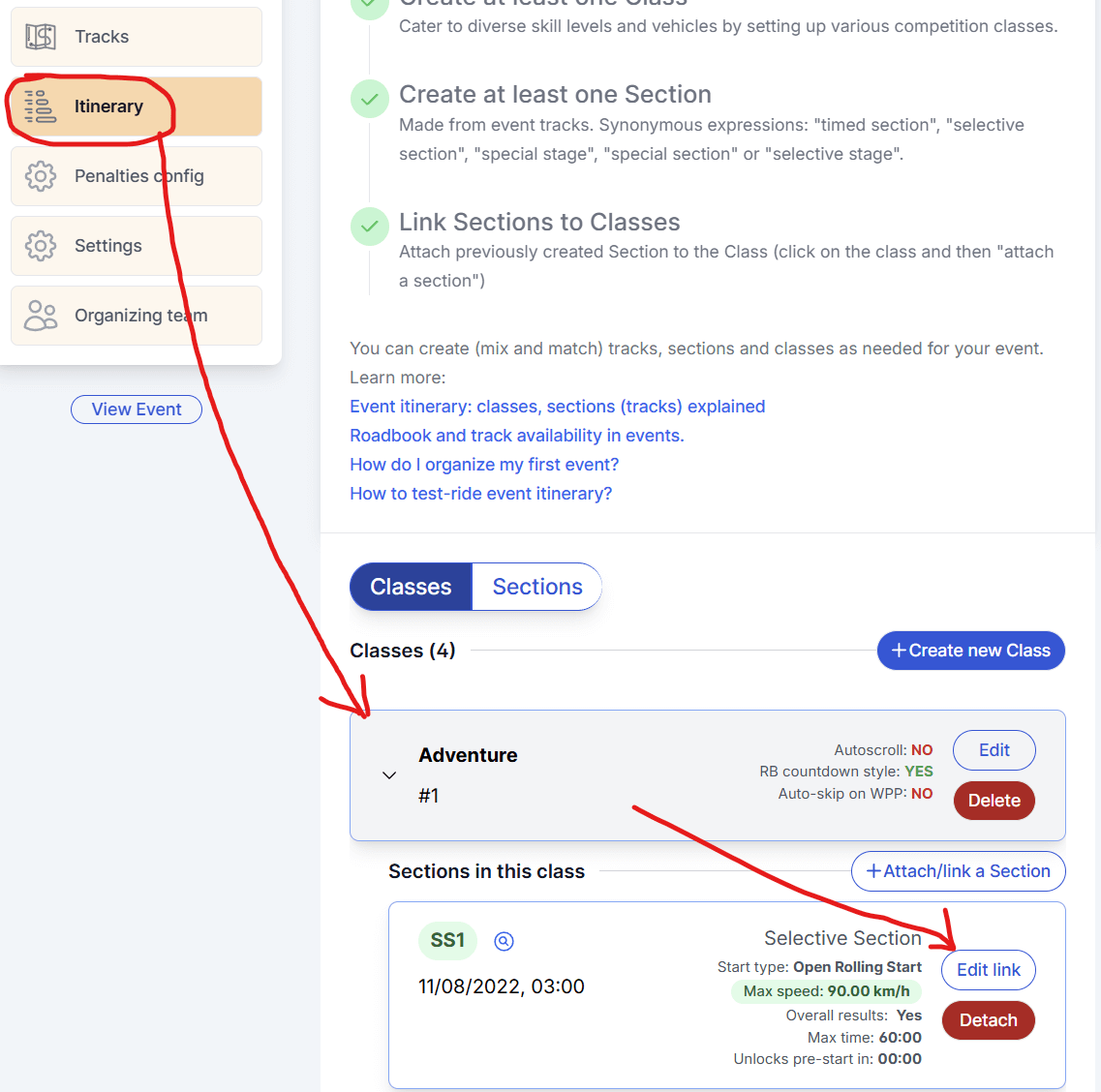 Go to Event Edit → Itinerary → Classes → Section → Edit link.